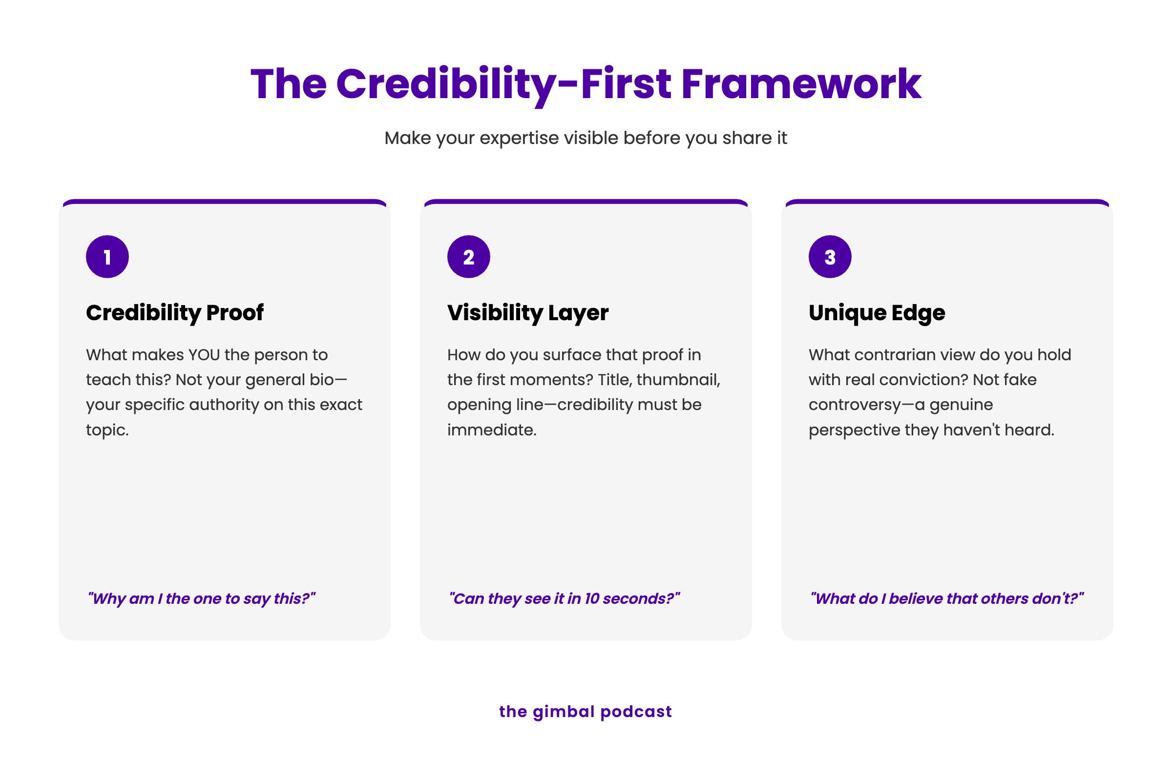 How do you surface that proof in the first moments? Title, thumbnail, opening line—credibility must be immediate.